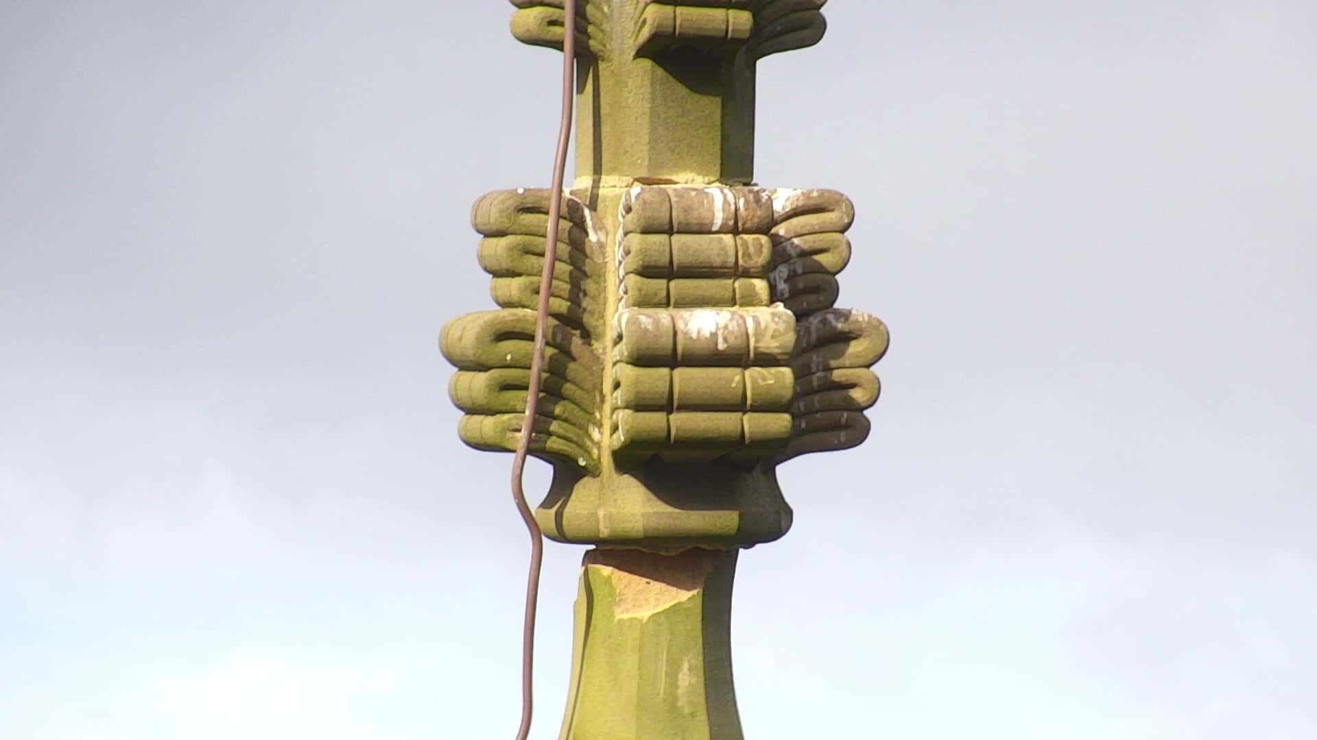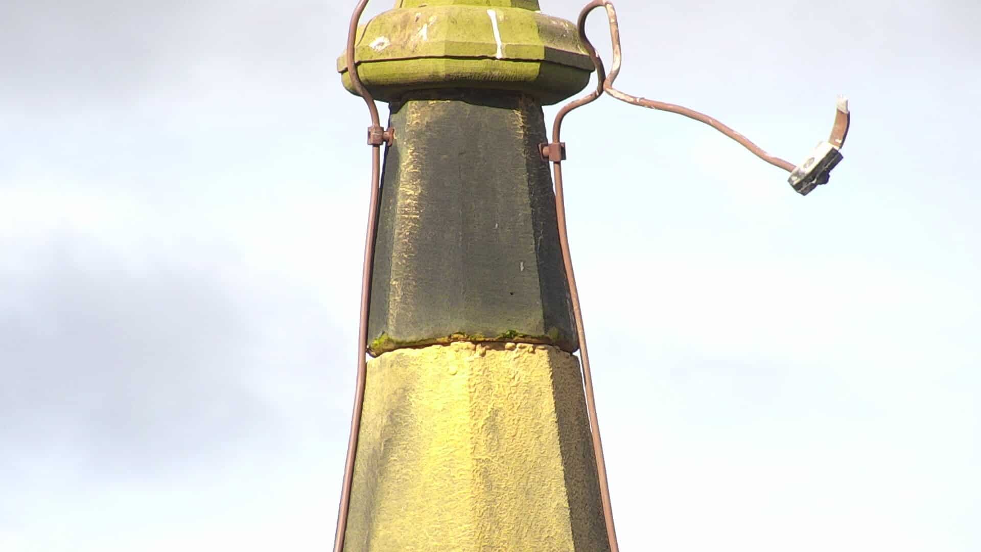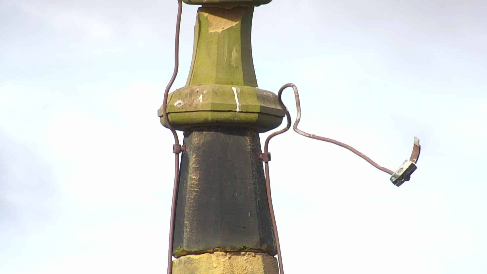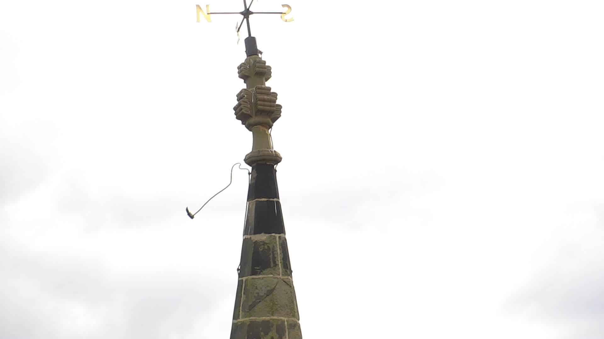 • Conduct a detailed inspection of the damaged spire, including the stone finial and the lightning protection straps.