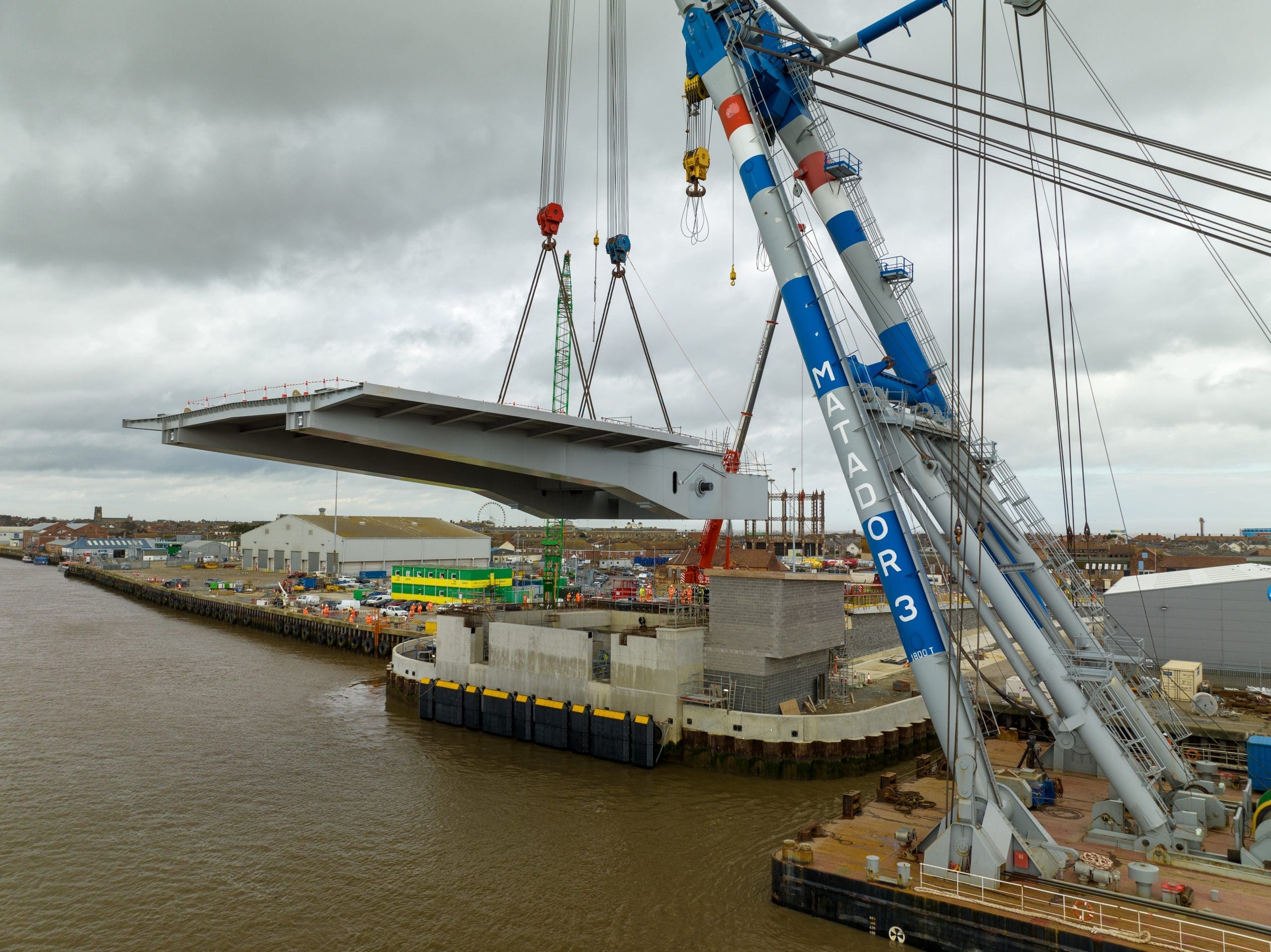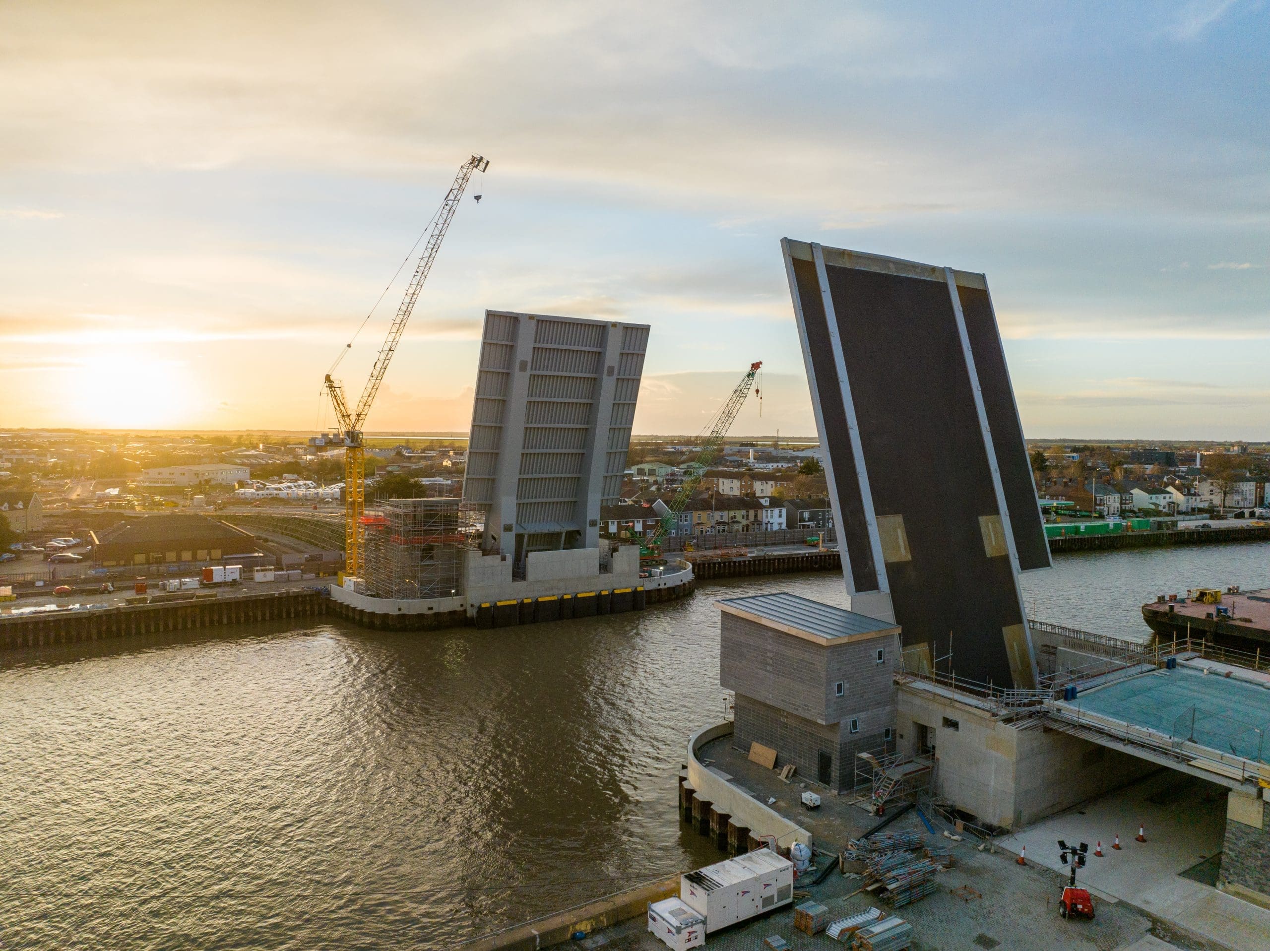 The construction of a large dual carriageway twin-leaf bascule lifting bridge involves numerous engineering processes that need close monitoring. Sky Revolutions deployed advanced camera systems and conducted monthly drone flights to gather comprehensive footage of the entire site, enabling detailed tracking of the project’s progress.