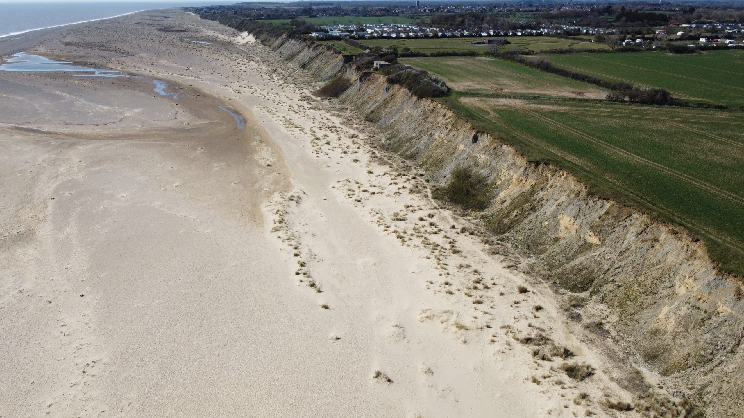 Sky Revolutions was approached by Coastal Partnership East and East Suffolk Council to conduct a comprehensive long-range aerial survey along the Pakefield and Thorpeness sections of the Suffolk coastline, located south of Lowestoft. The primary objective was to identify areas of erosion affecting beach levels and the soft cliffs in this region.